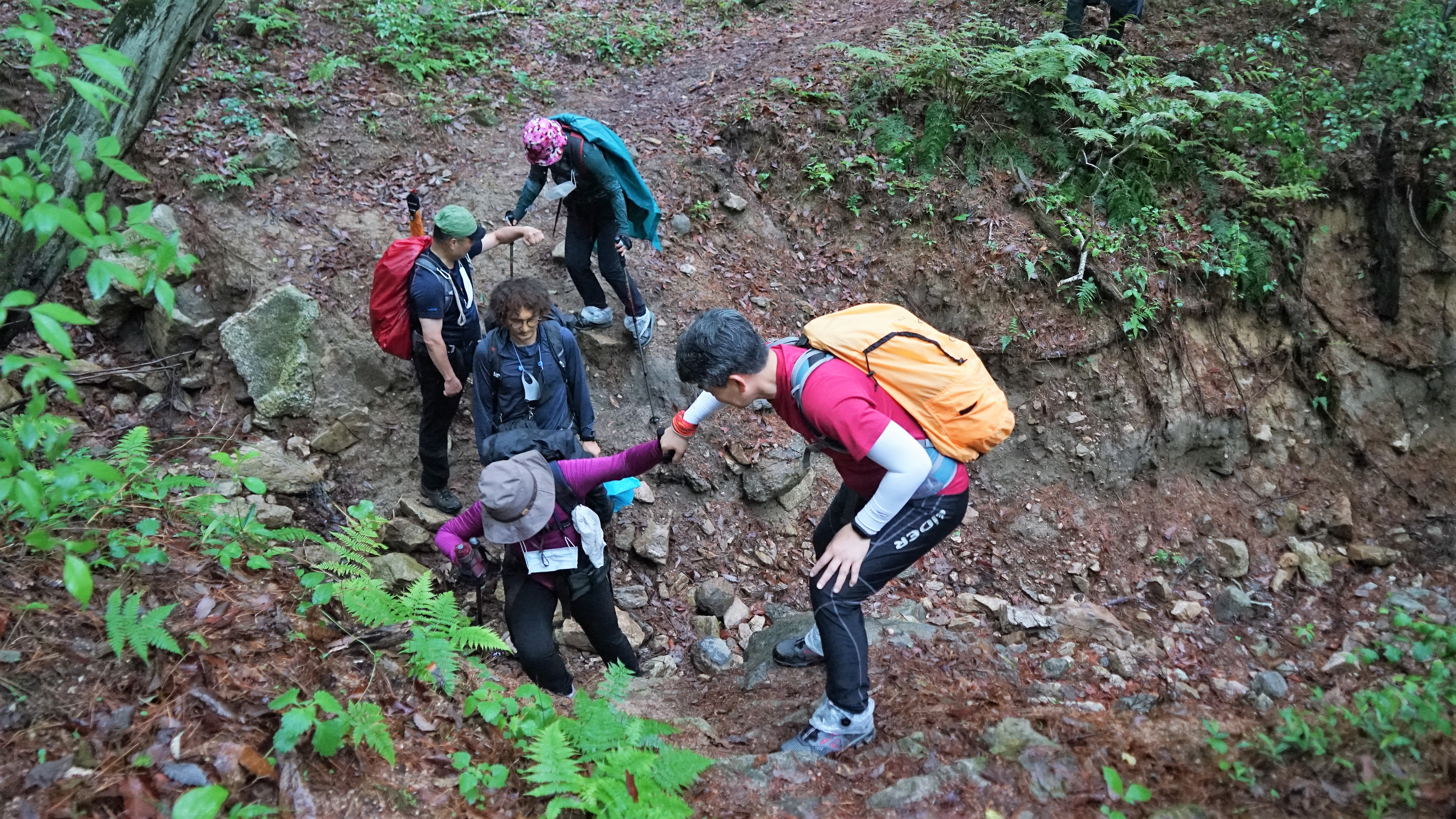 비 피해로 훼손된 길에서 끌어주고 밀어주는 훈훈한 현장.