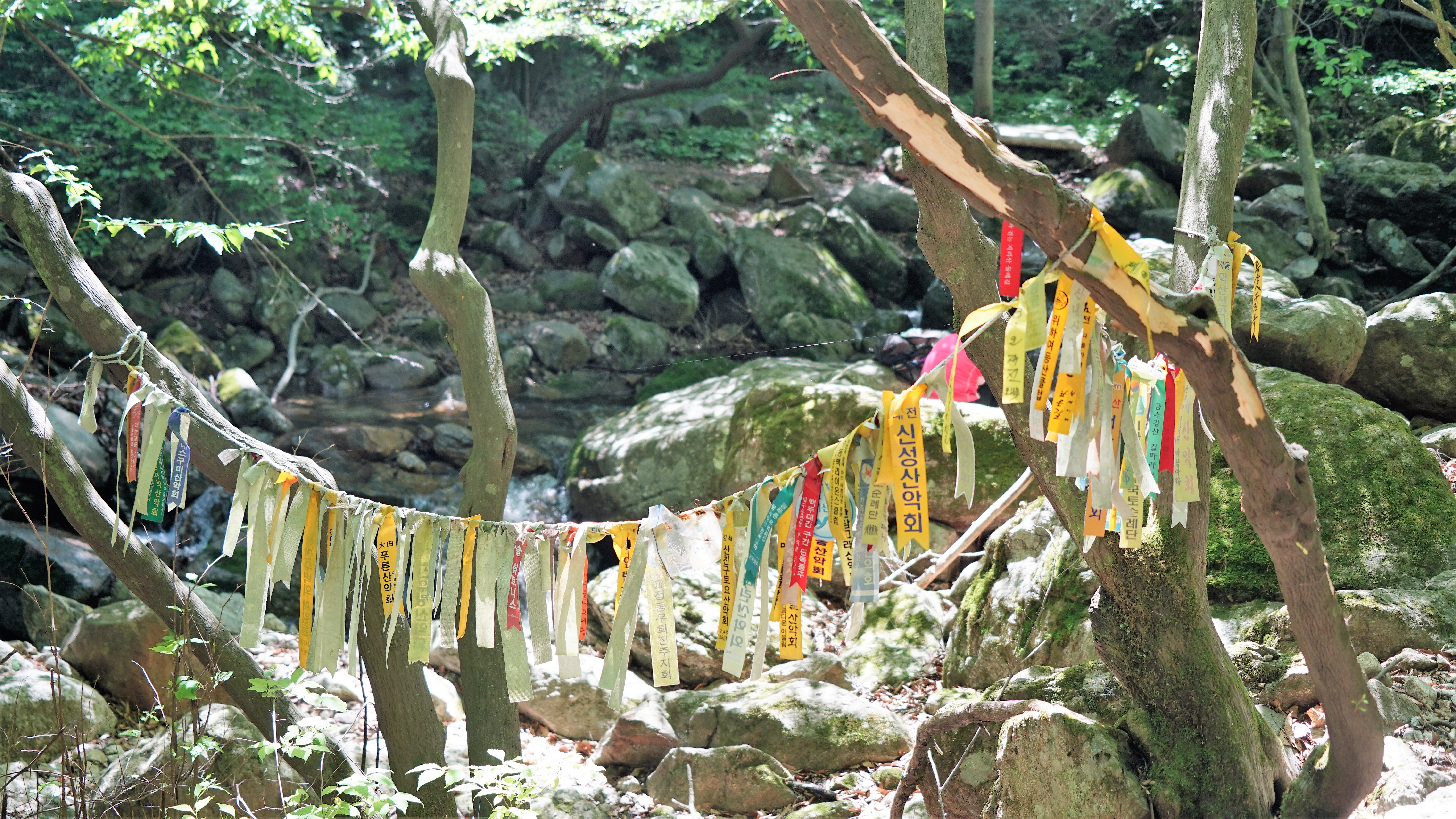 맑은 물이 시원스레 흐르는 수성대 마치 성황당을 방불케하누나.