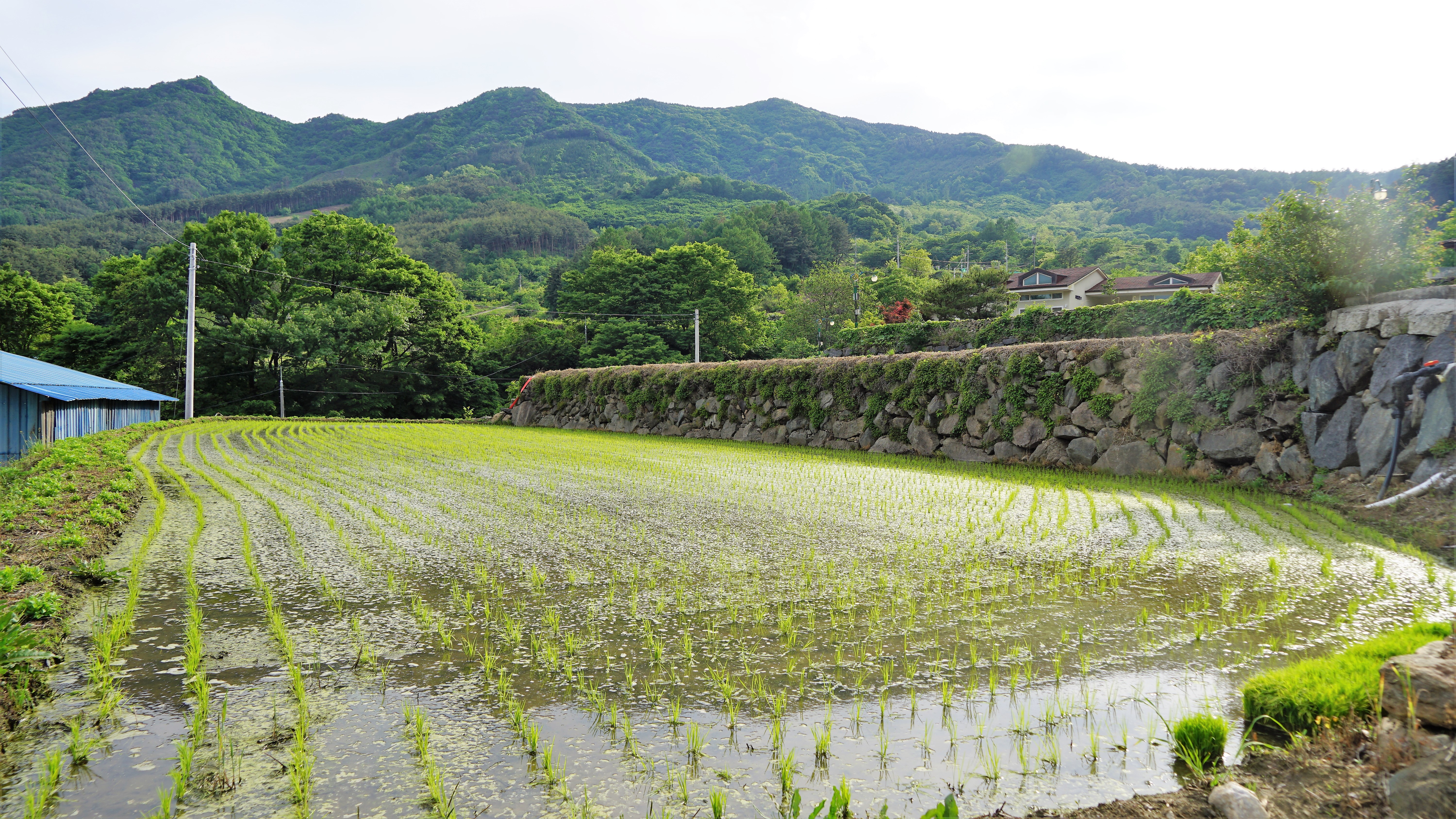 인월의 기름진 들녘에 모내기마친 무논들이 펼쳐진다.
