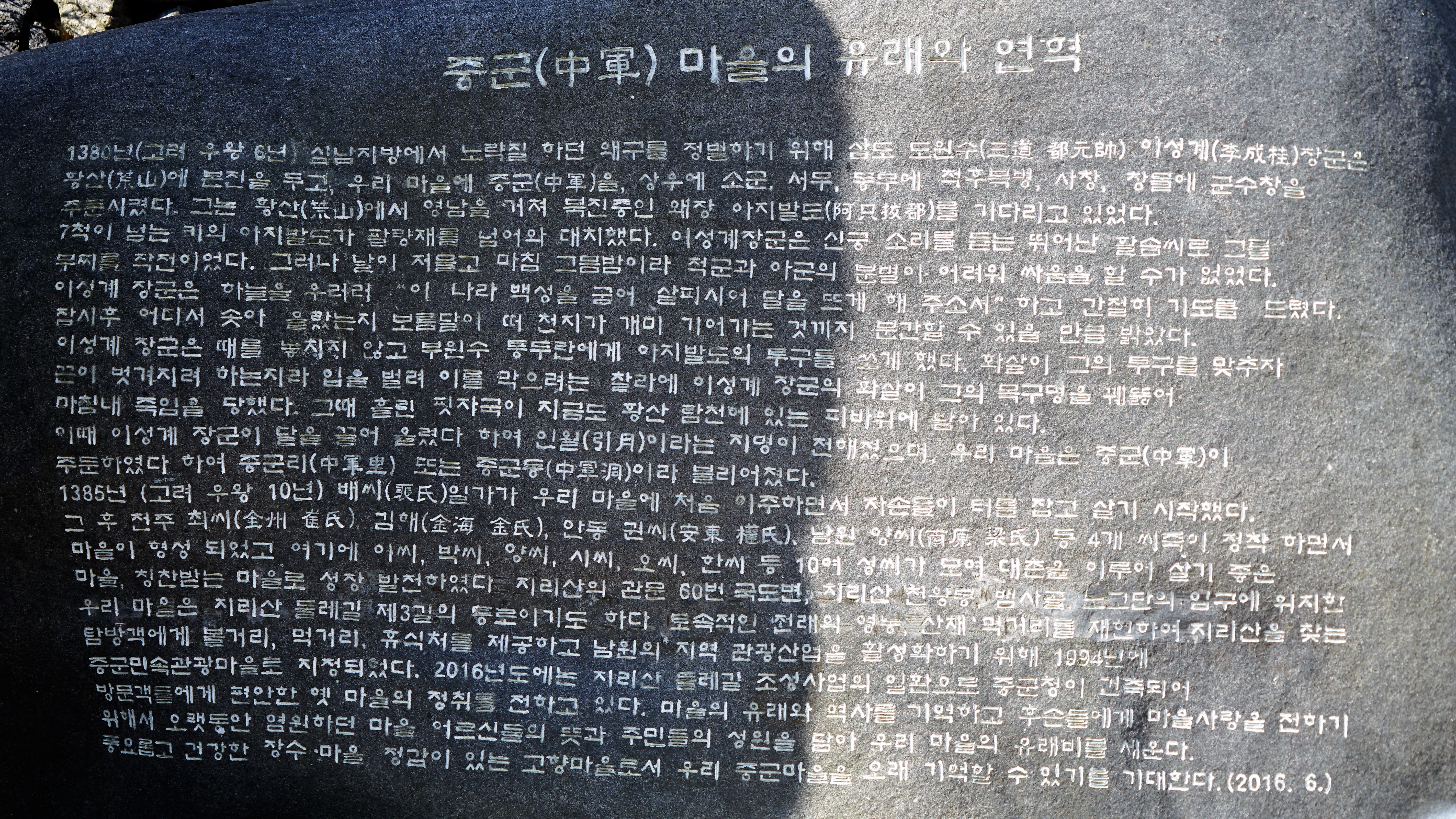이성계의 황산대첩의 중군이 설치되었다는 중군마을.