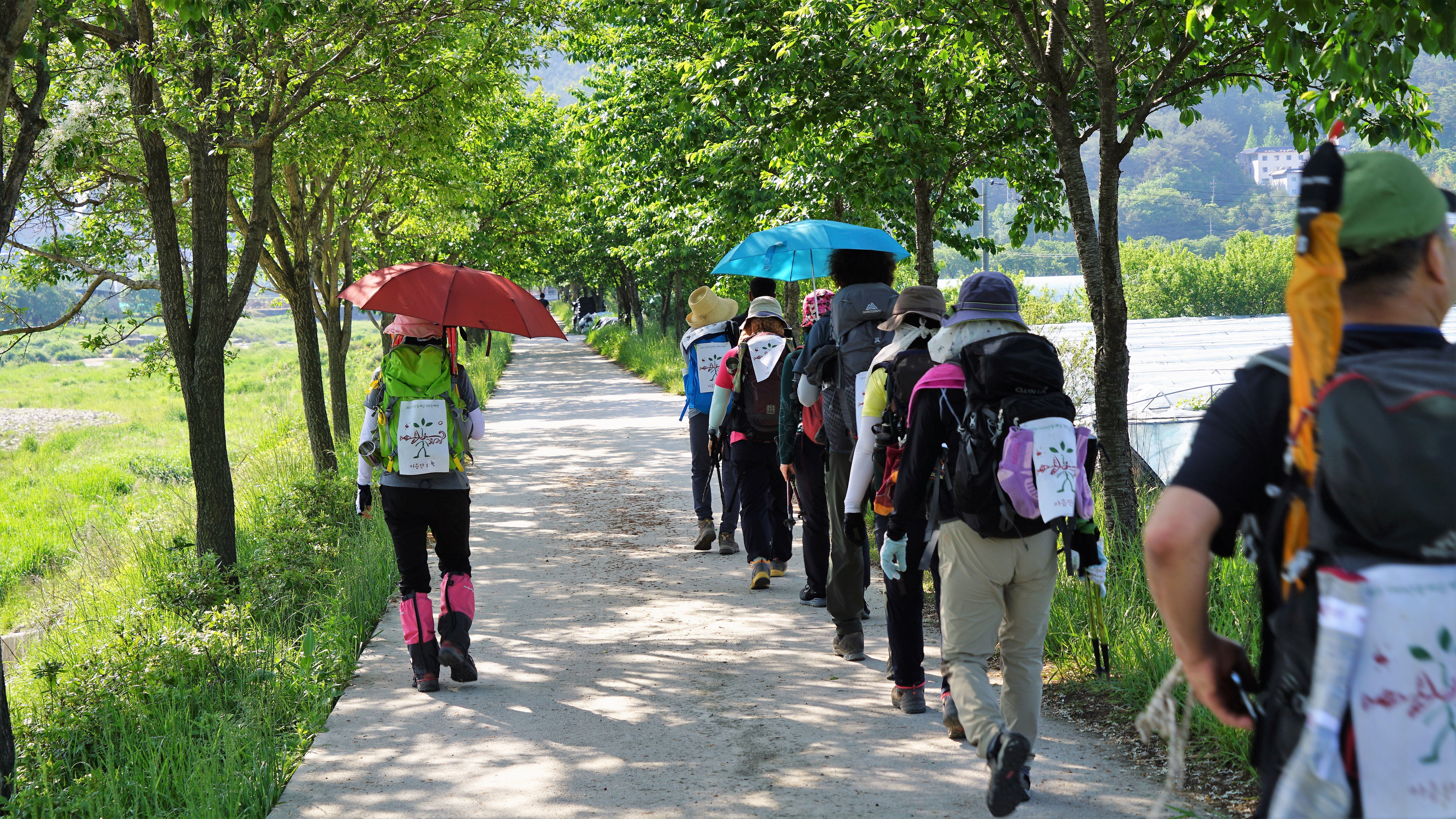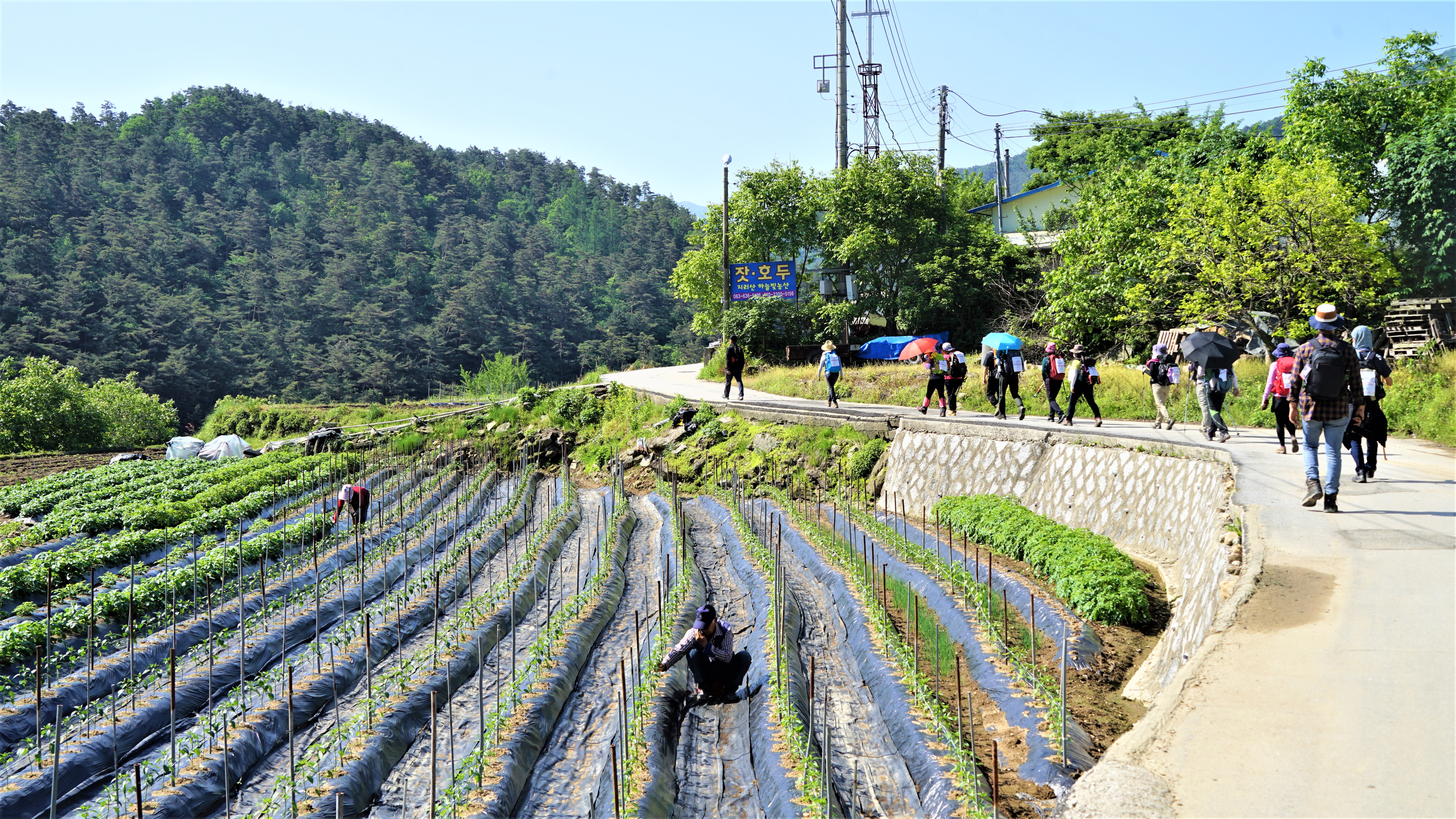 농부님들께 다정한 인사를 드리며 지나는 길동무들.