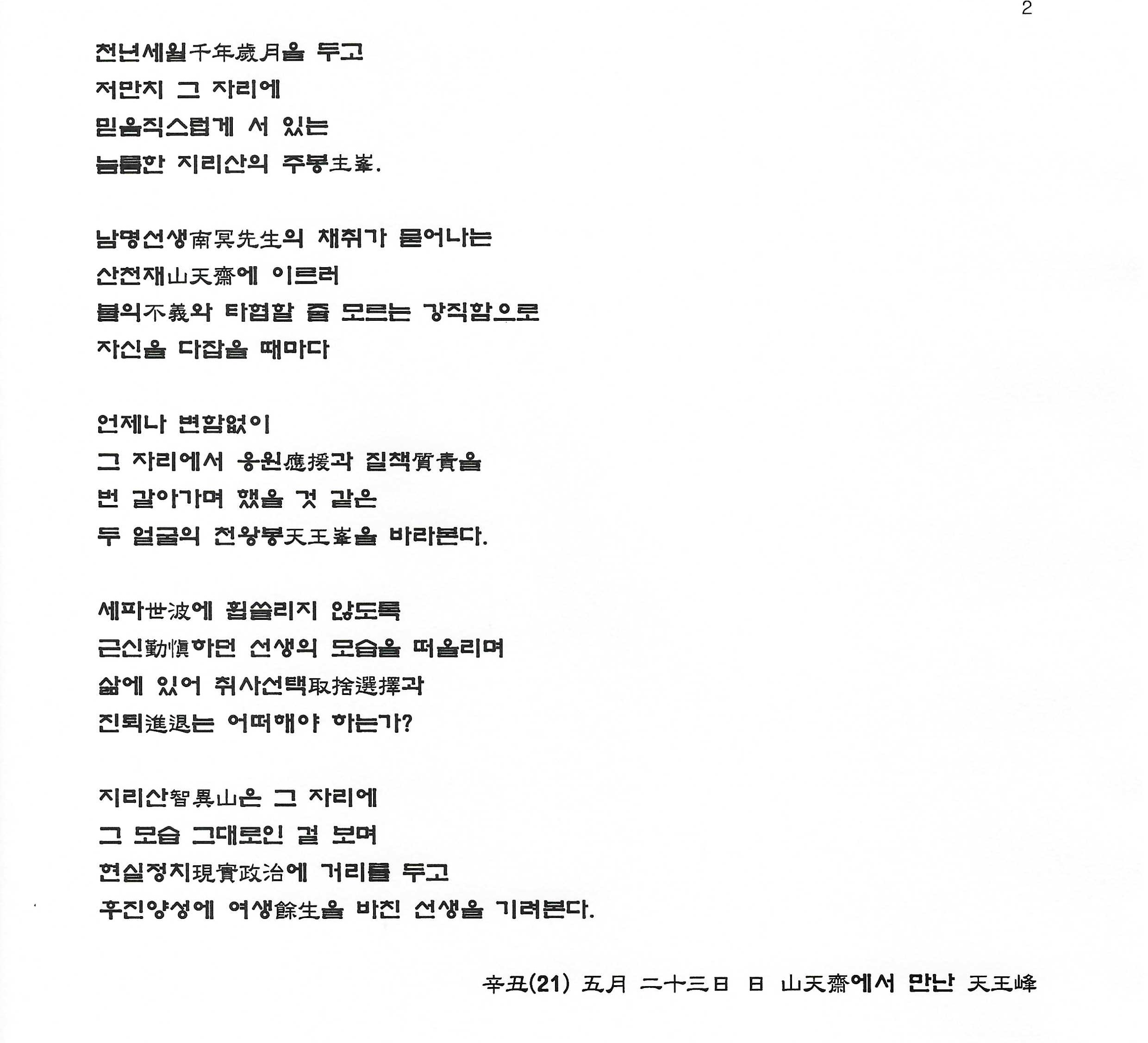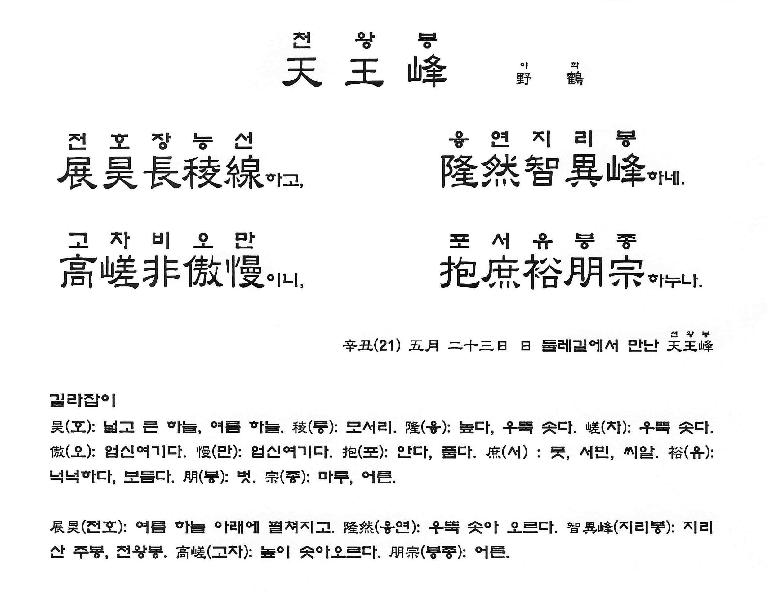 辛丑(21) 五月 二十三日 日 둘레길에서 만난 天王峰