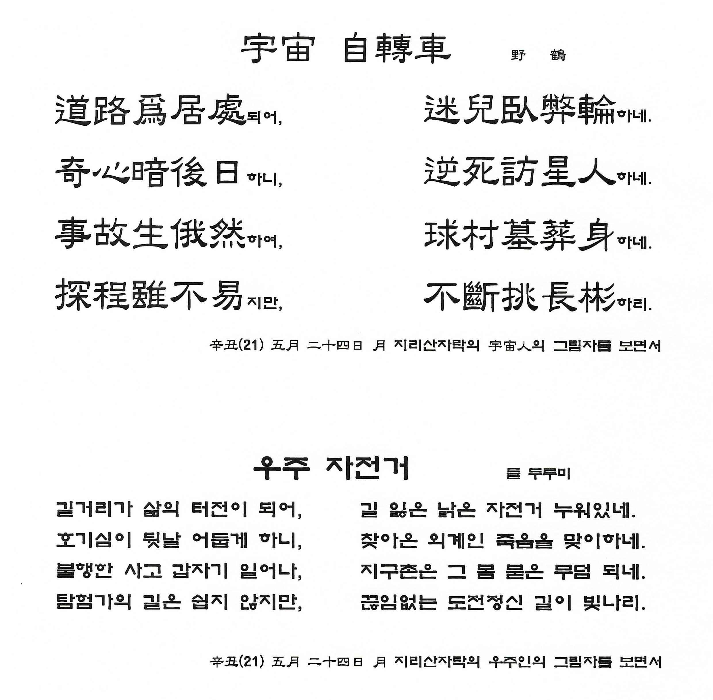 辛丑(21) 五月 二十四日 月 지리산자락의 宇宙人의 그림자를 보면서
