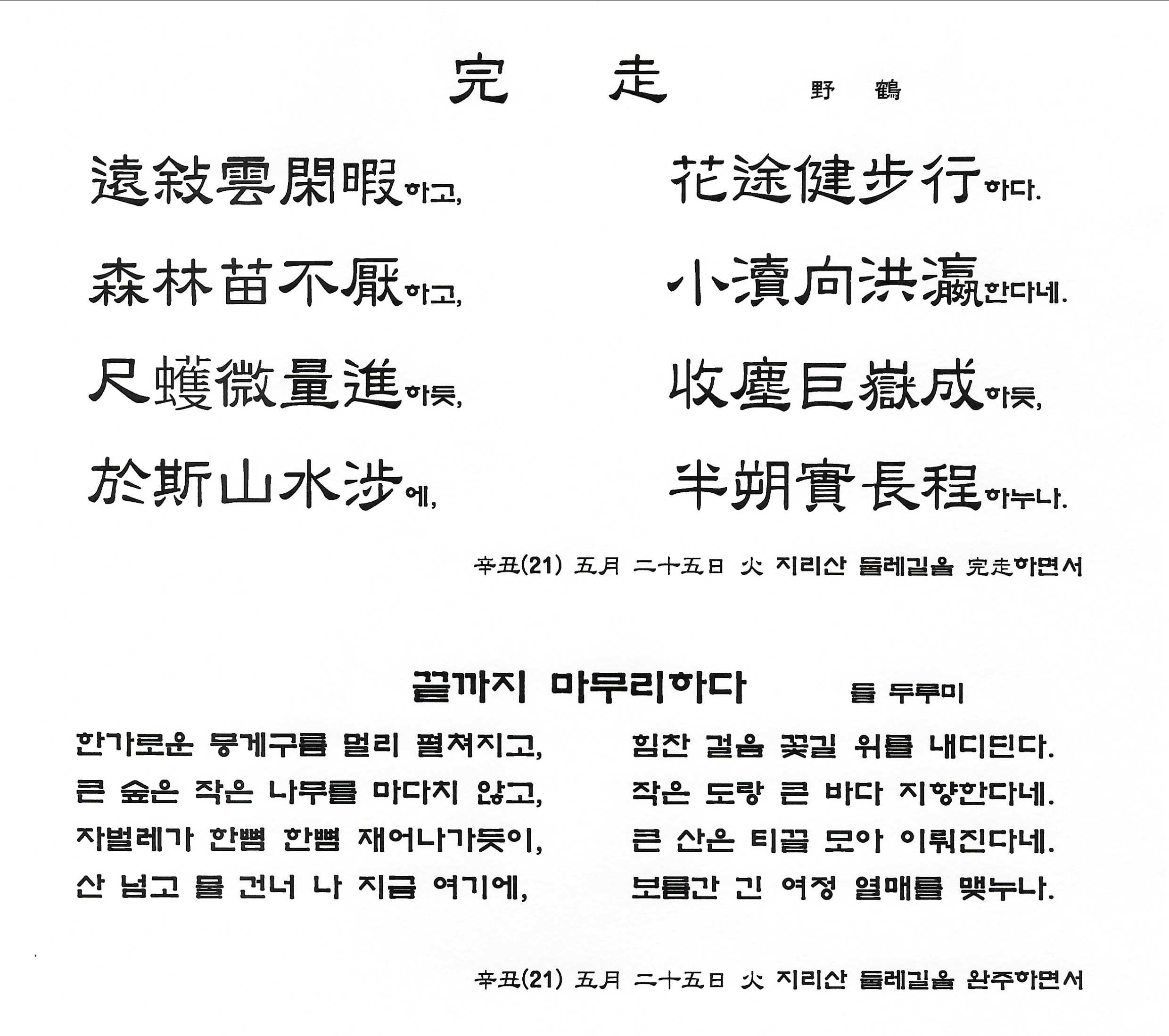 辛丑(21) 五月 二十五日 火 지리산 둘레길 完走를 코스모스와 함께하면서