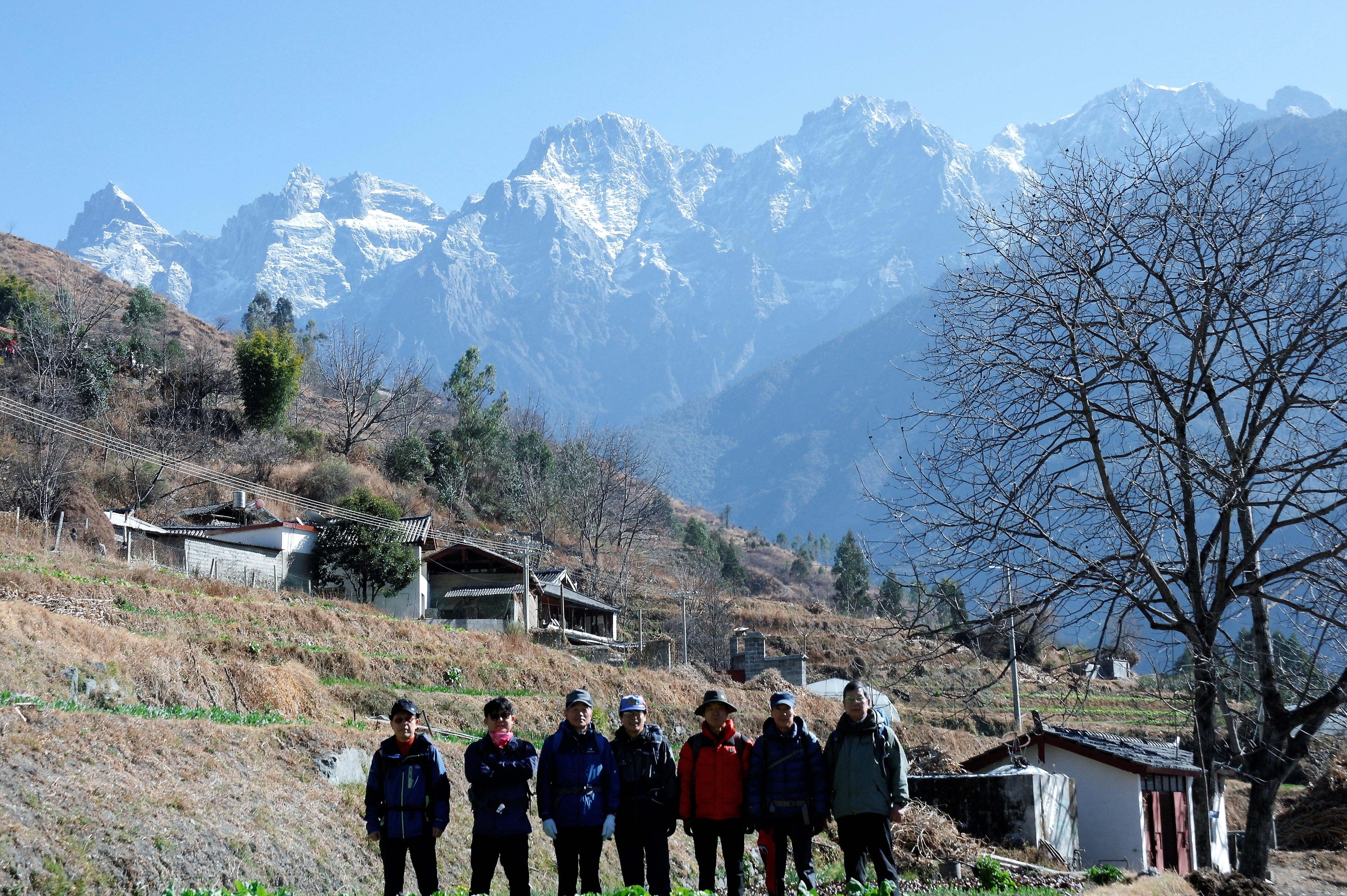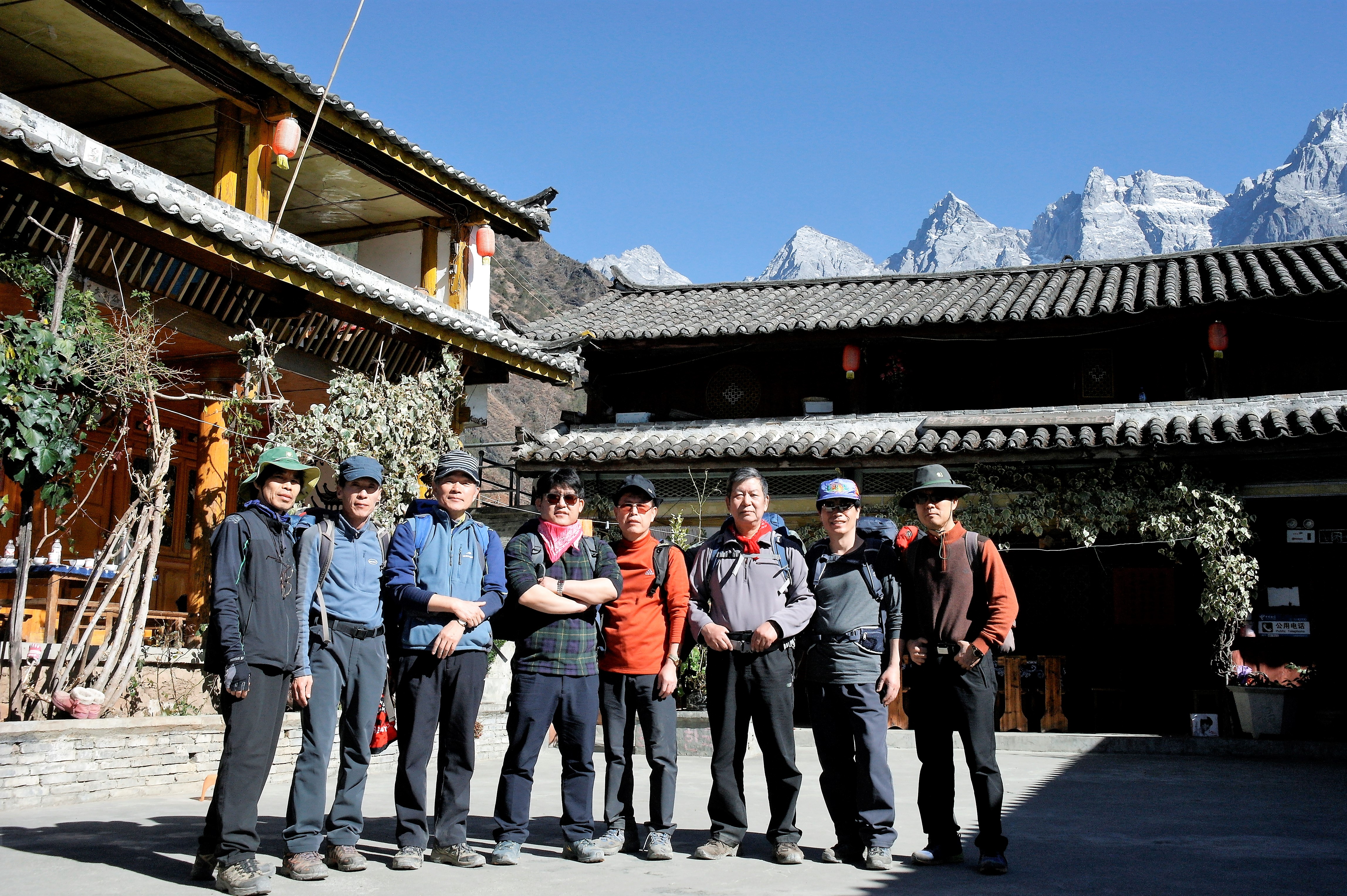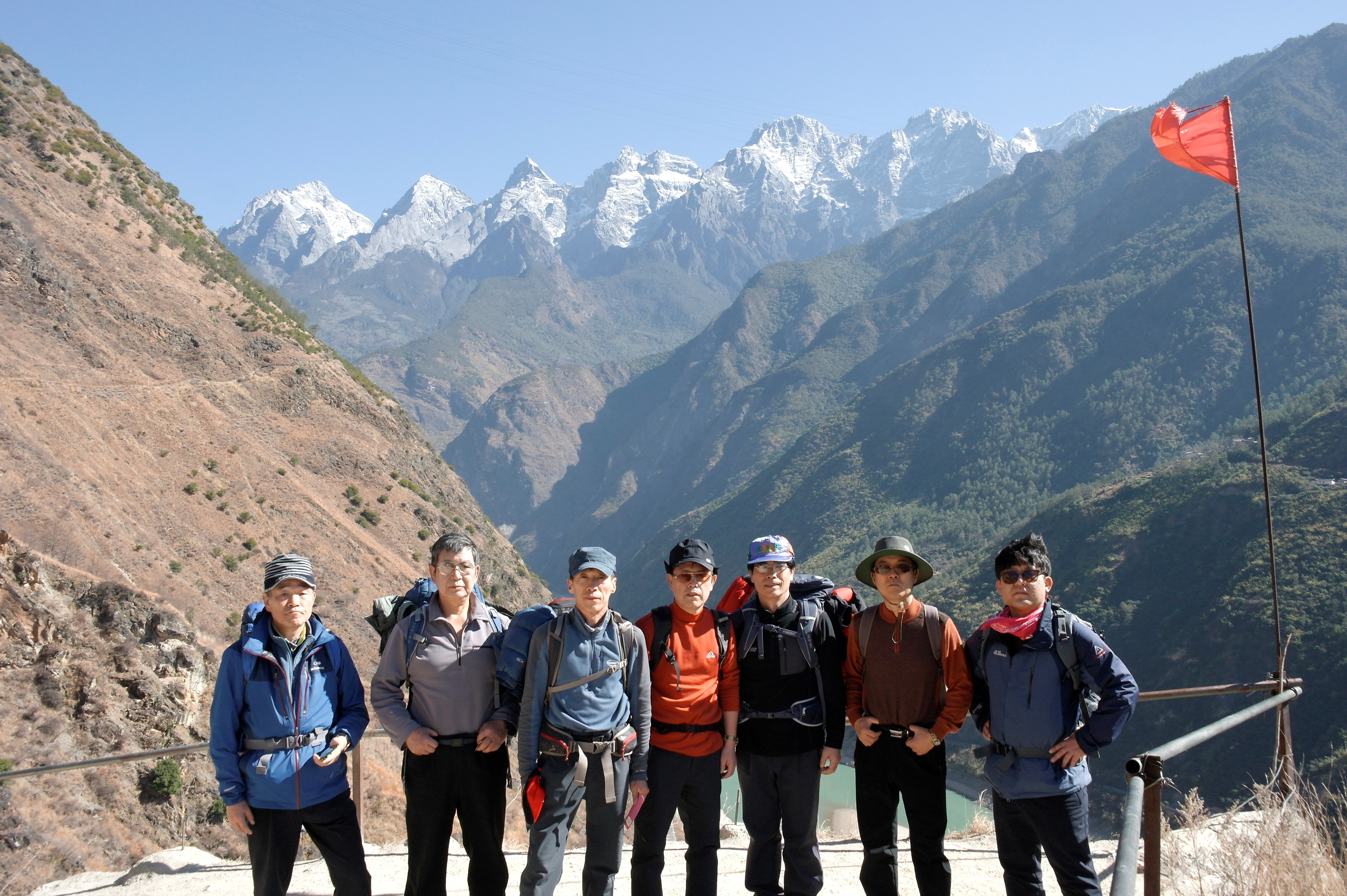 합하설산을 배경으로 트레킹 인증샷을 남기고 출발한다.