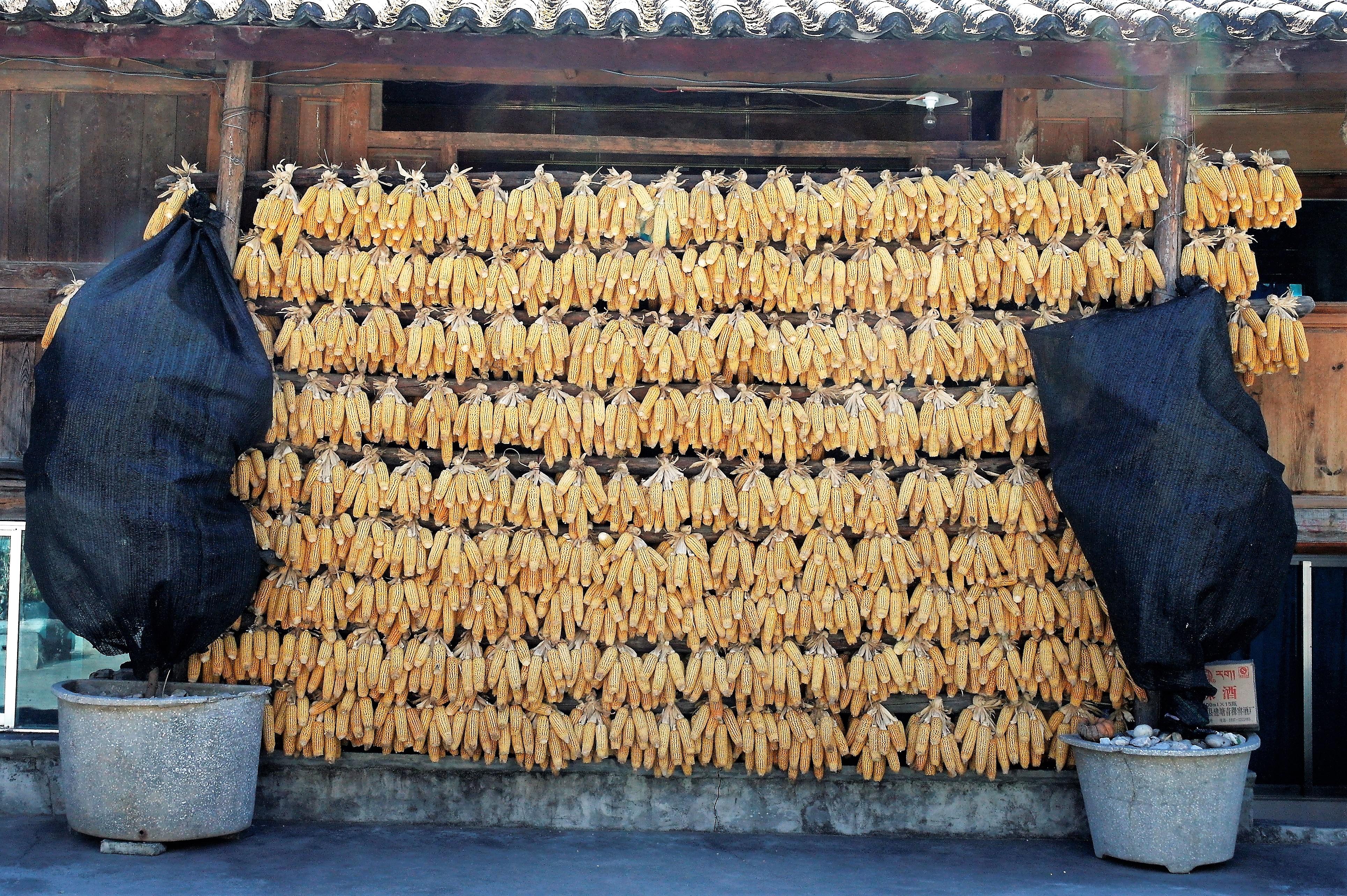 수확한 옥수수 건조대의 모습이 장관이로고!