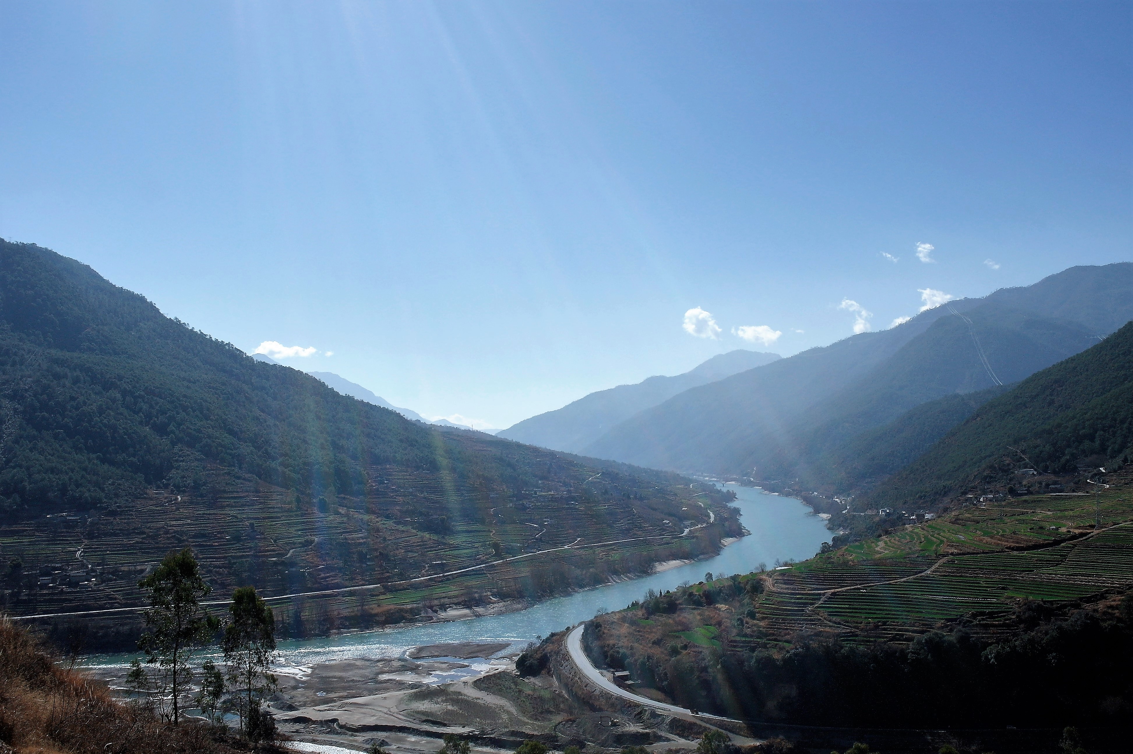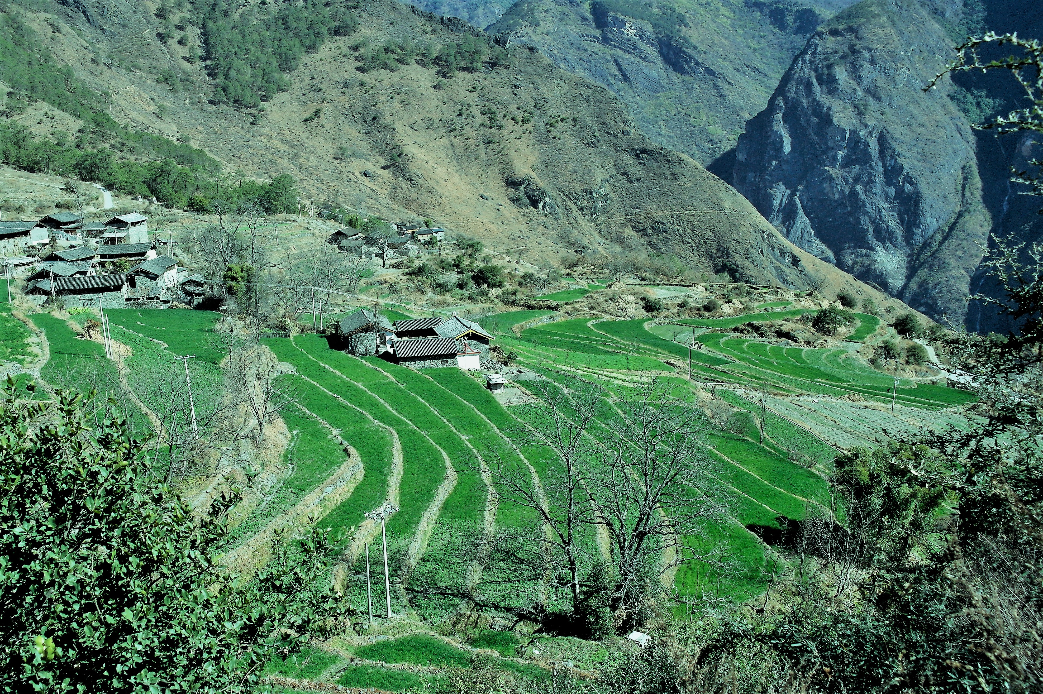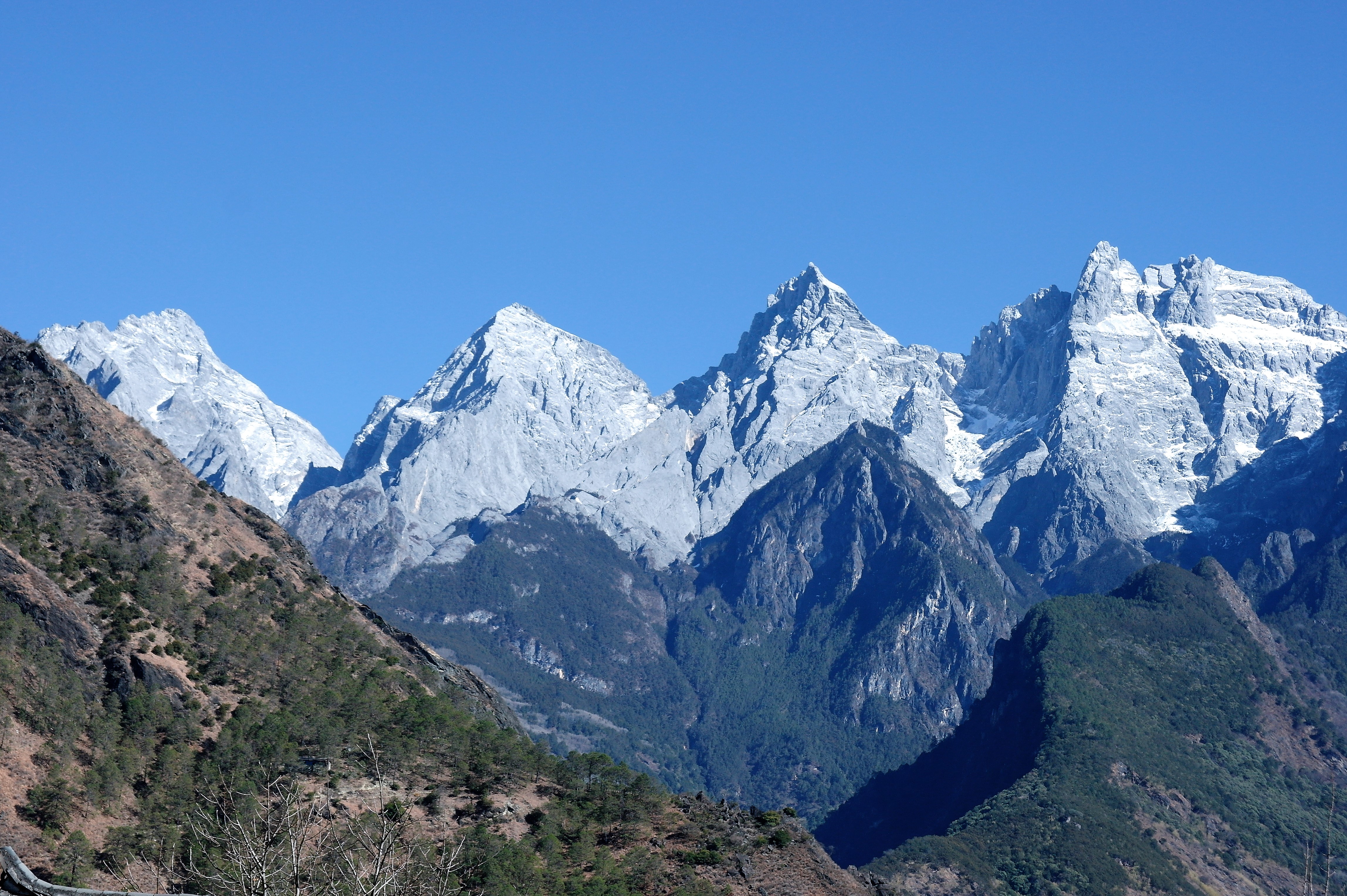 양자강의 상류인 금사강이 옥빛을 가득히 머금고 옥룡설산과 합하설산을 가르며 유유히 흐르누나!