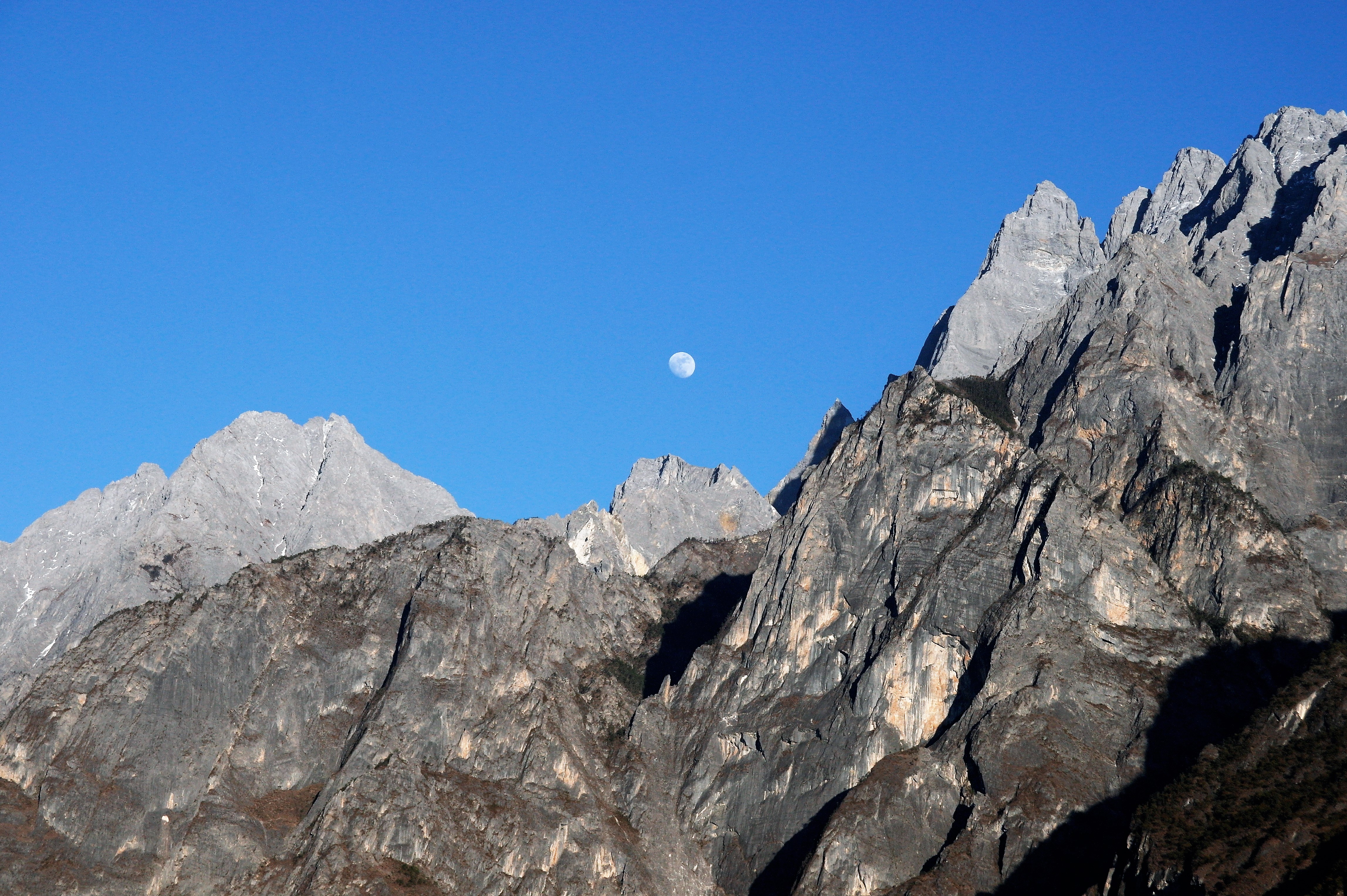 차마객잔에서 바라본 설산위로 떠오른 하얀 달.