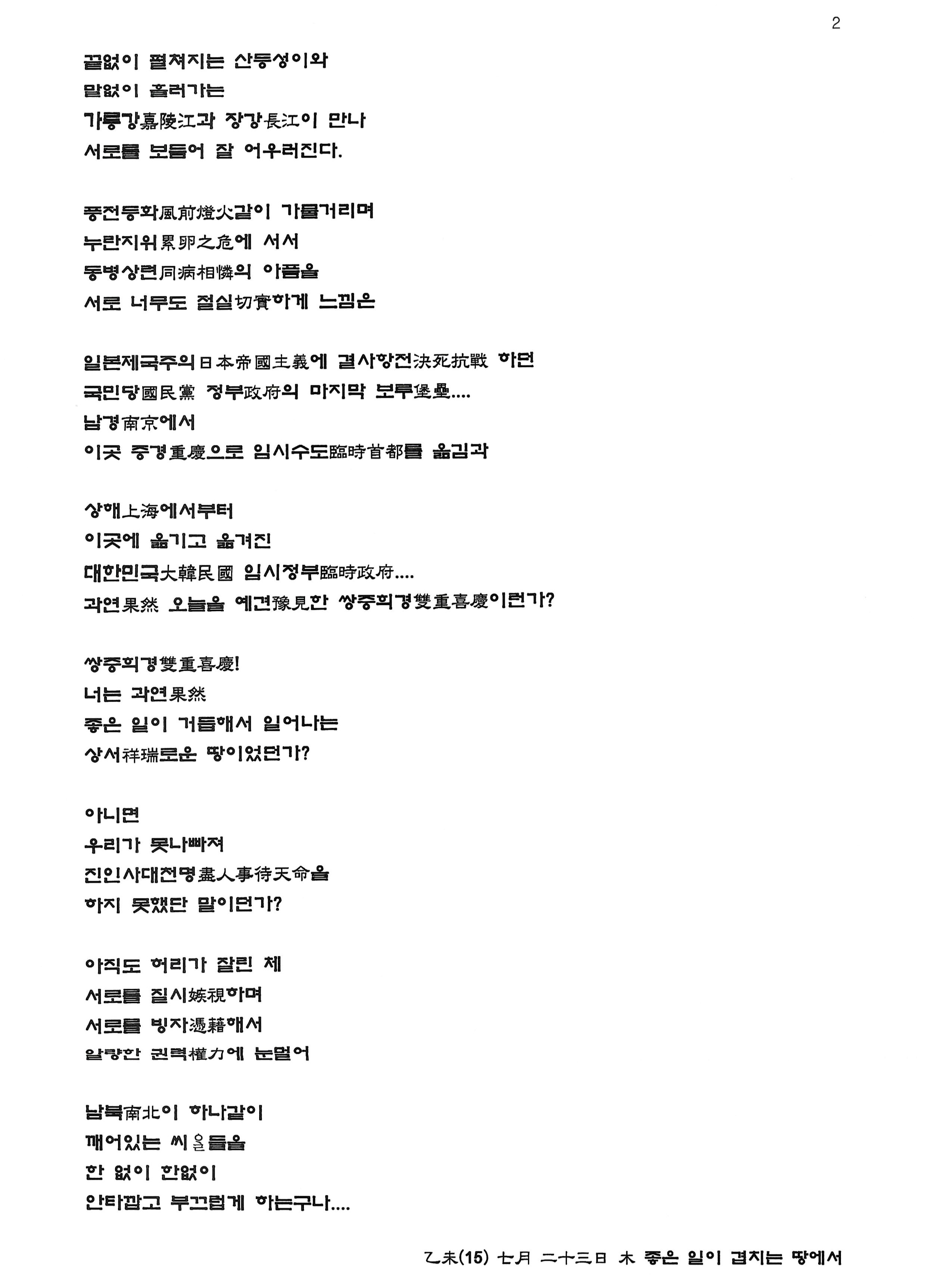 乙未(15) 七月 二十二日 水 重慶人民大禮堂에서