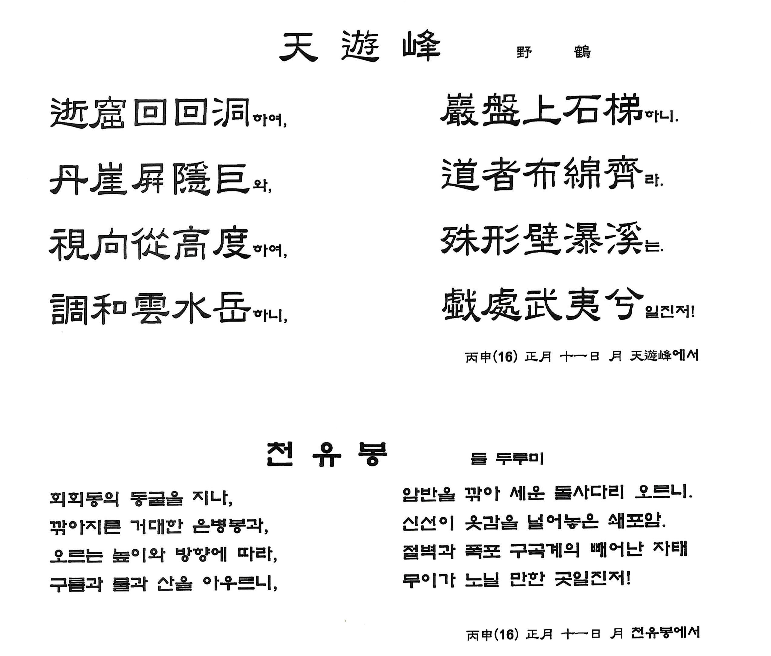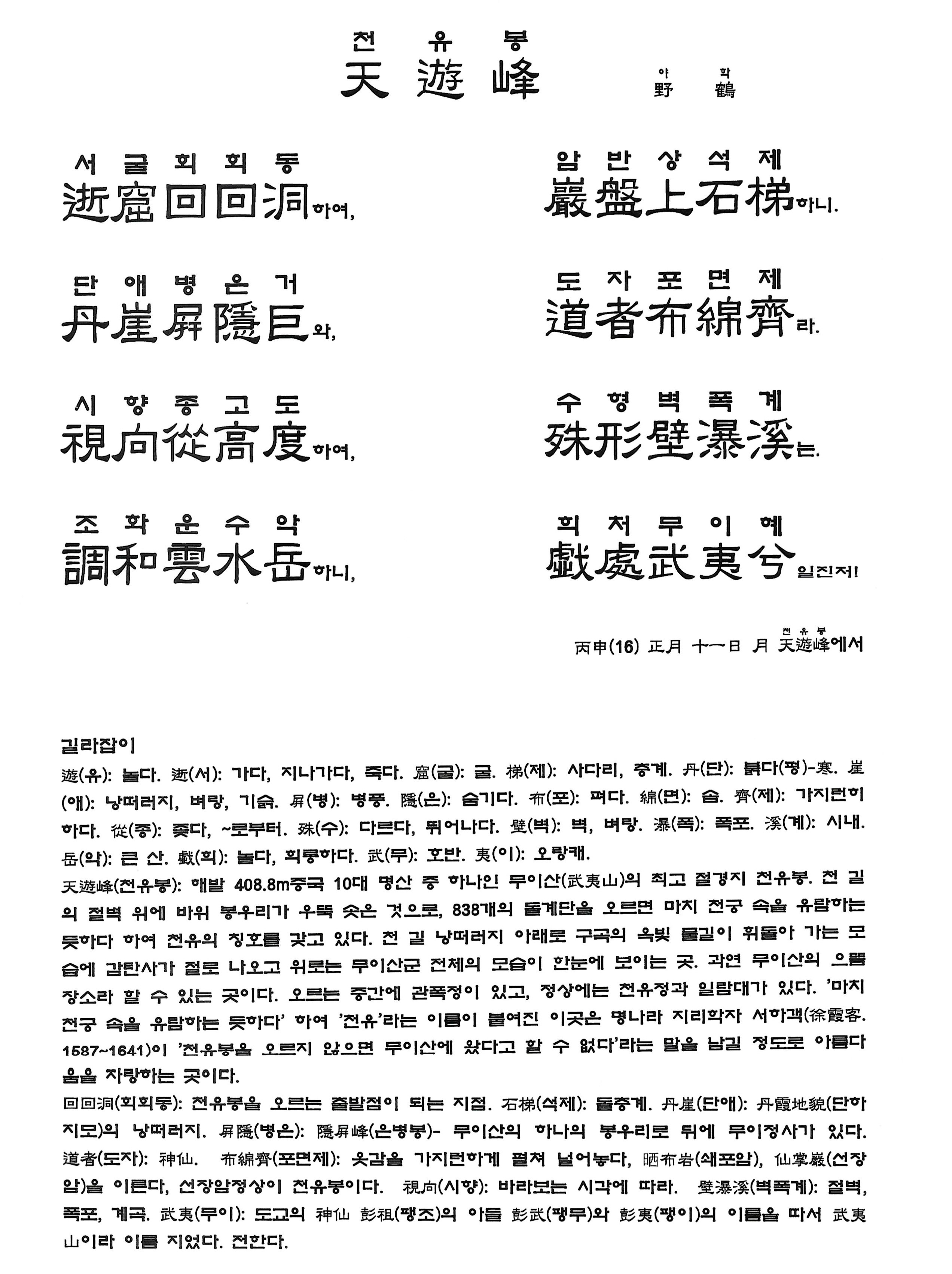 丙申(16) 正月 十一日 月 天遊峰에서