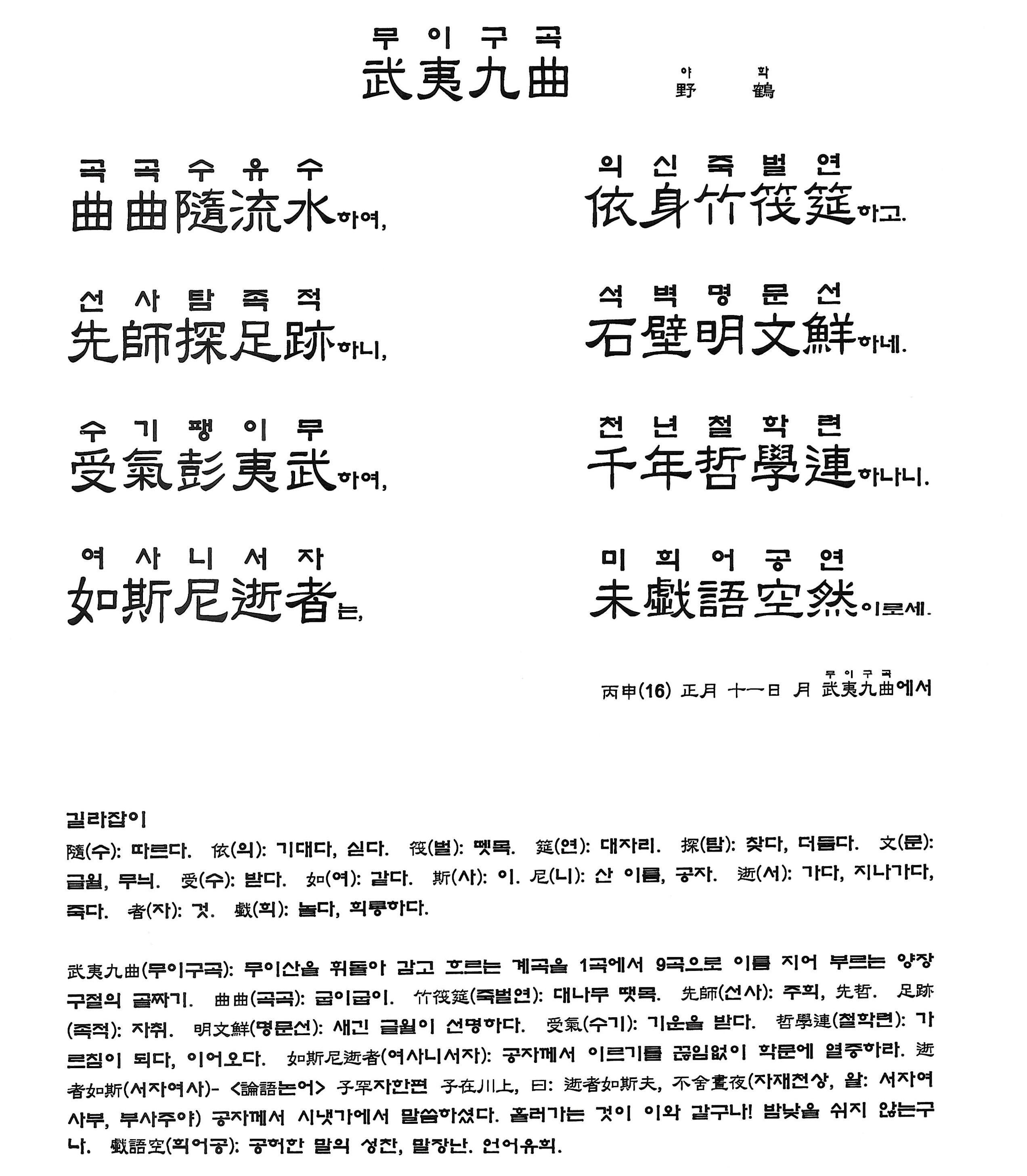 丙申(16) 正月 十一日 月 武夷九曲에서