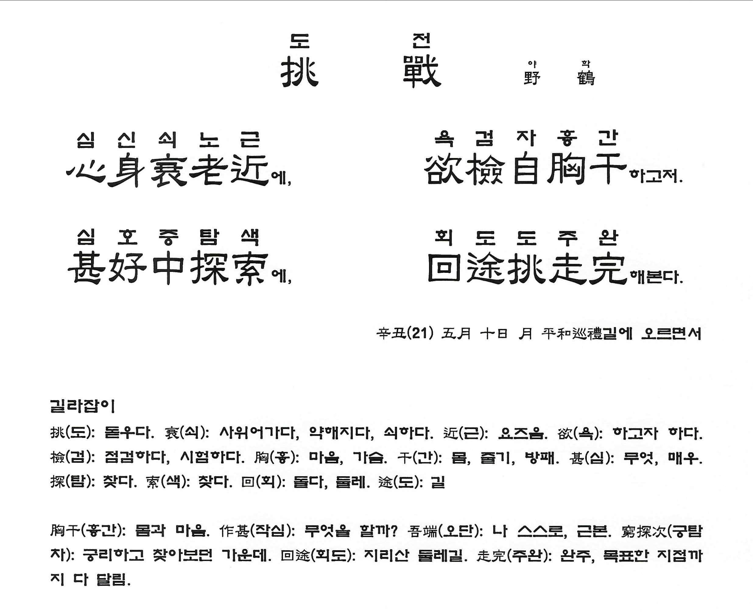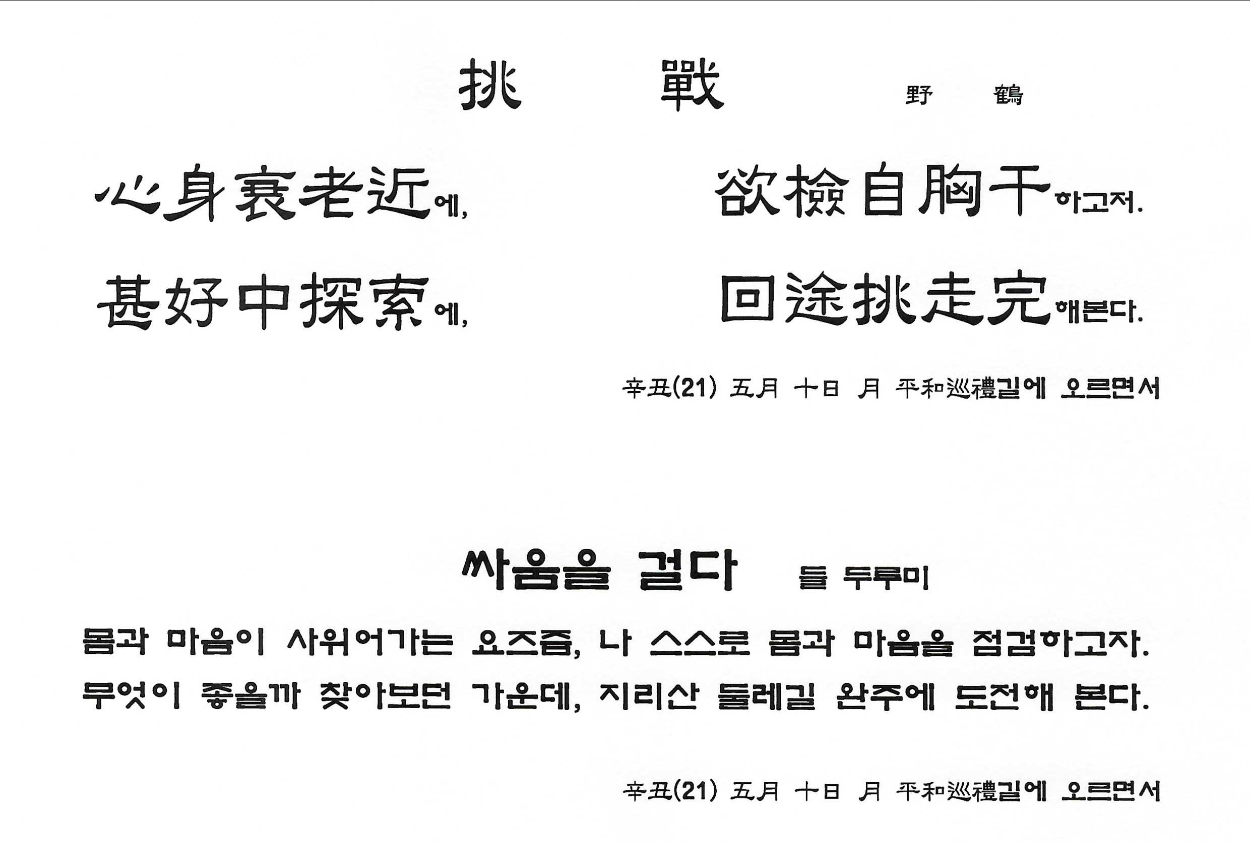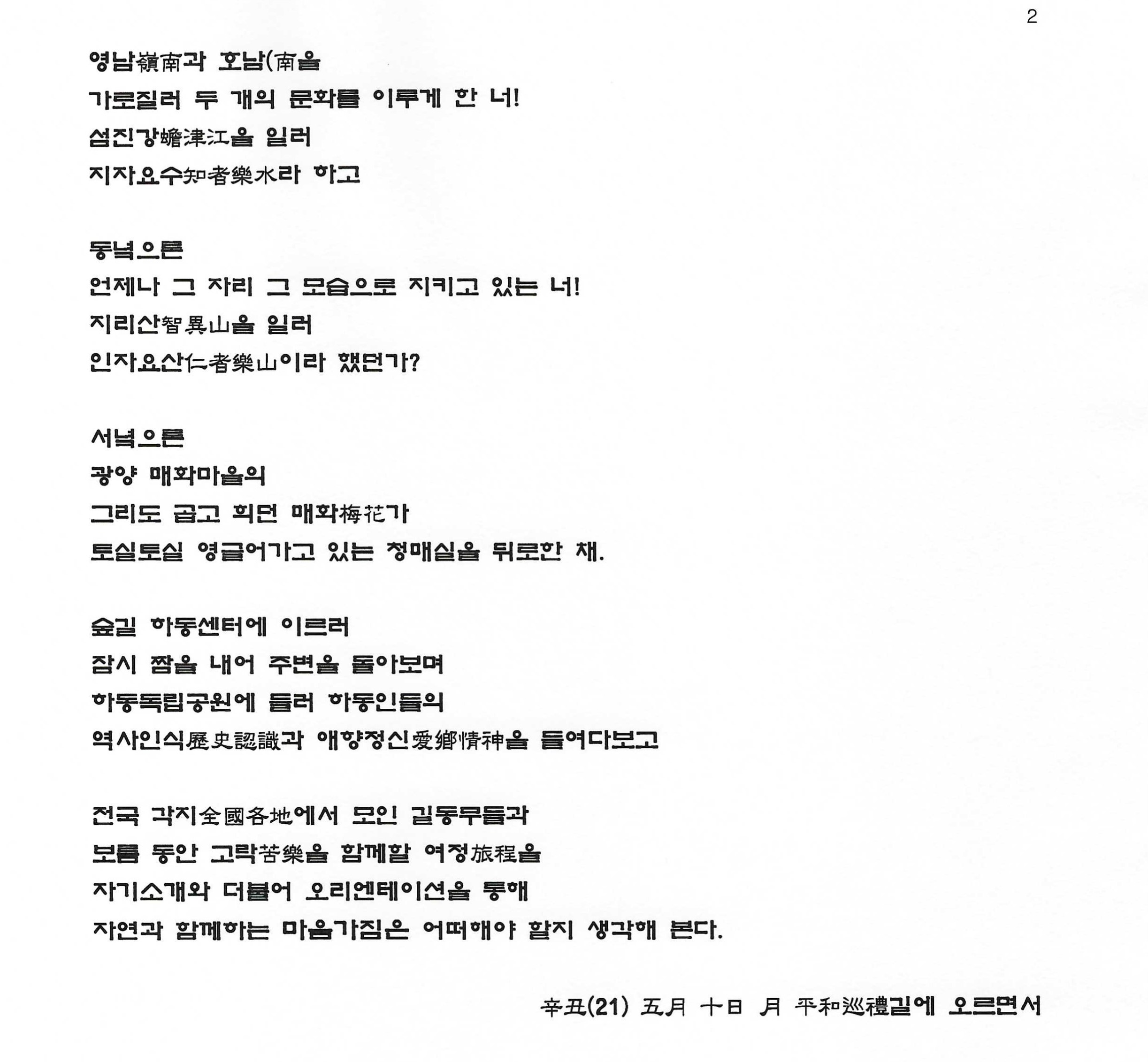 辛丑(21) 五月 十日 月 平和巡禮길에 오르면서